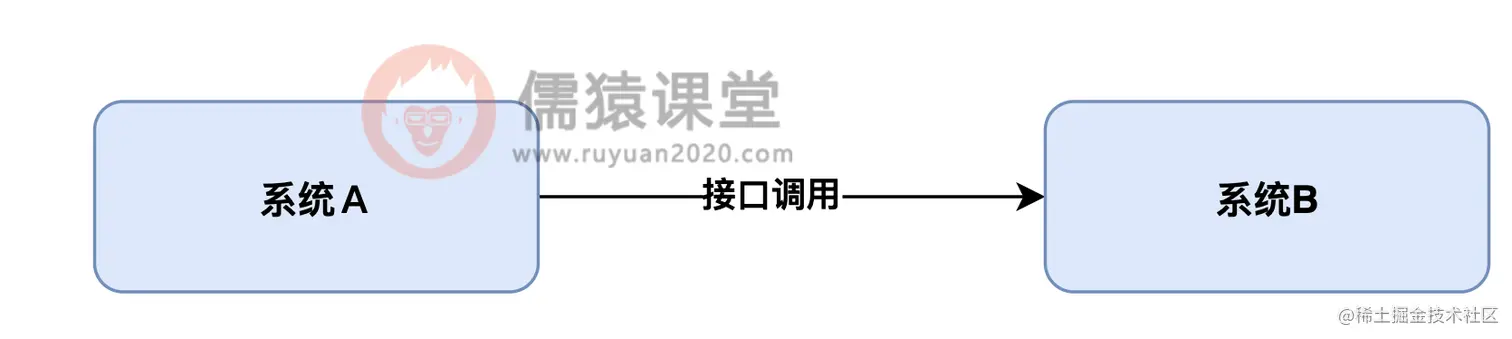 首先,假设你们公司有两个系统,咱们就假设是系统A和系统B吧,这俩系统现在的需求就是要让系统A可以发送一个请求给系统B来实现系统间的接口调用,咱们看下面这个图。
