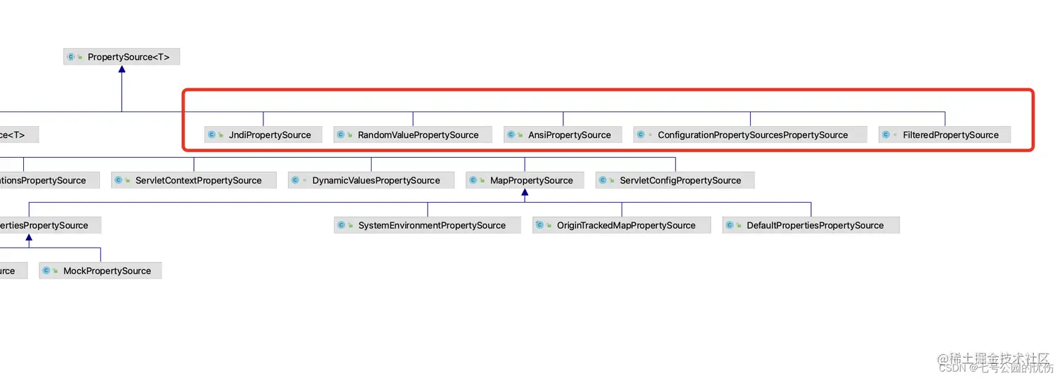 这部分是直接继承自PropertySource,而且没有子类,如下图中用红框圈出的部分: