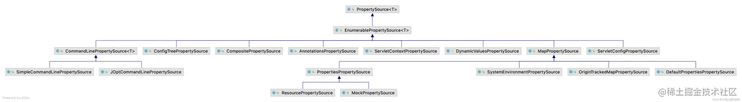 看着很复杂,但其实仔细看可以发现,以PropertySource为基础,一共能分为2部分:左边的EnumerablePropertySource为一部分,剩下右边的为一部分,接下来,我们来看看这两部分分别是干什么的。