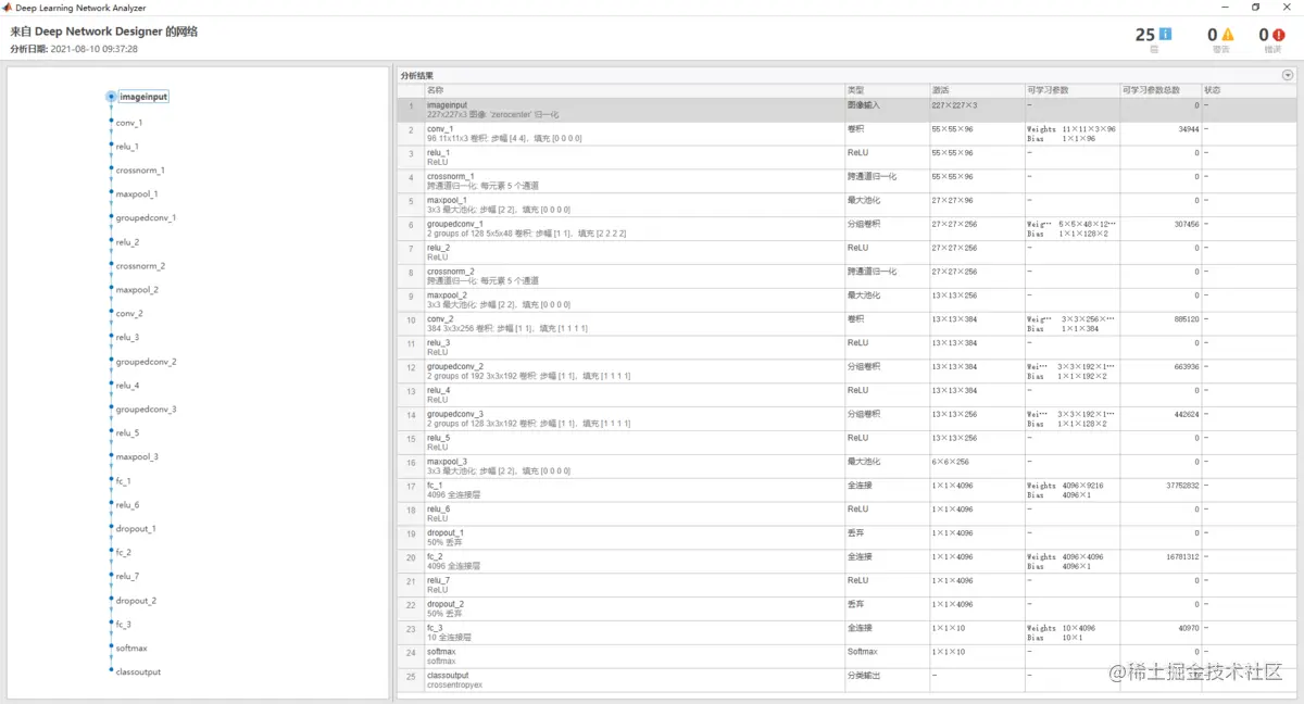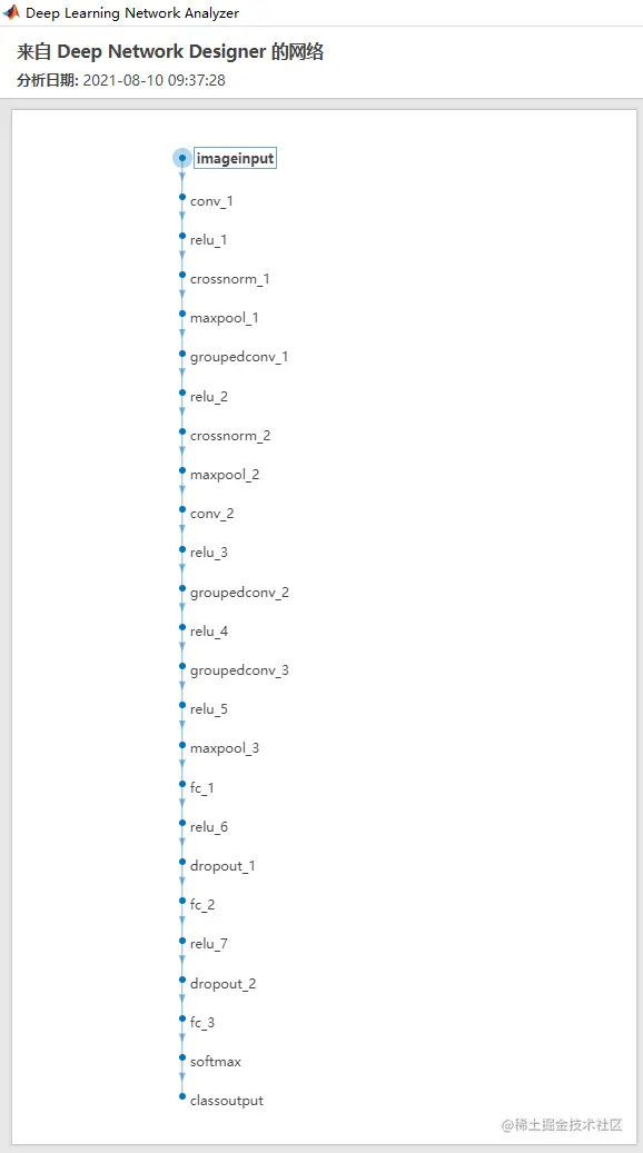 关于如何使用Deep Network Designer,大家可以打开自己的MATLAB,在APP一栏中找到Deep Network Designer点击打开即可。使用的具体流程详见我在介绍LeNet5一文中,这里就不在赘述了。地址: www.jianshu.com/p/86f591c44…