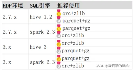 结合测试结果,我们对不同的集群环境与SQL引擎下所推荐使用的存储格式进行了梳理,如下表: