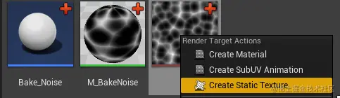 编译蓝图后,系统将把您的材质写入渲染目标。现在您要做的就是右键单击渲染目标,然后选择 “创建静态纹理(Create Static Texture)” 和将要创建的纹理。