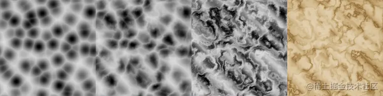 下面是使用沃罗诺伊噪声作为基础生成大理石类纹理的方法