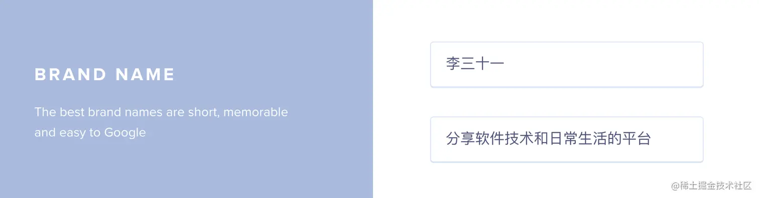 第一步:输入品牌名Brand name和品牌标语Slogan,比如:“李三十一”和“分享软件技术和日常生活的平台”。