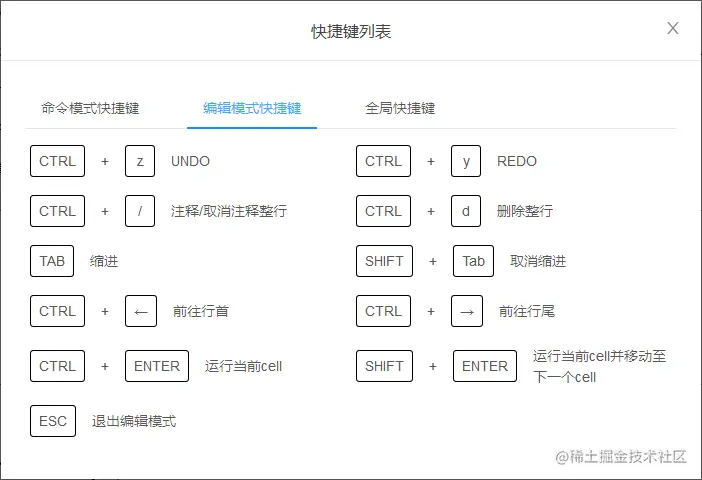 和原生Notebook快捷键基本一致.