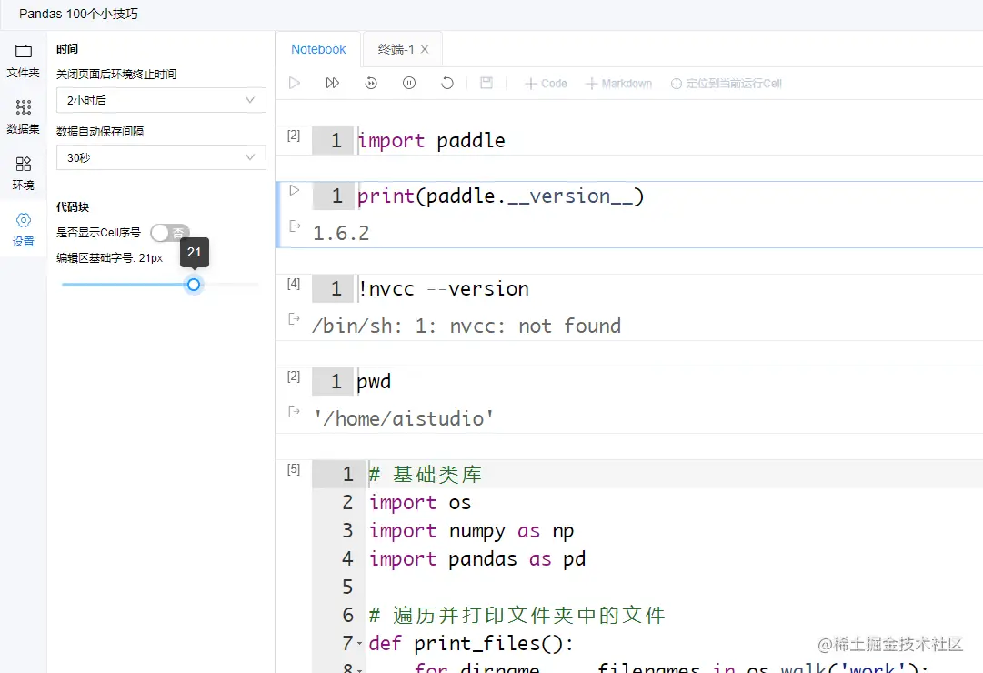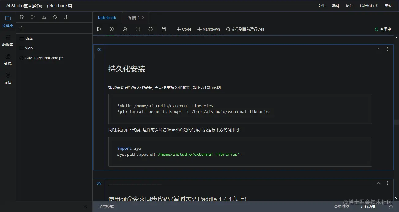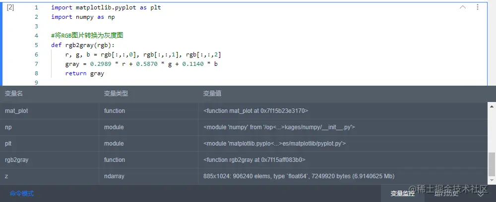 因为Notebook的Cell是可以随意颠倒顺序来执行的, 因此本平台自带"变量监控"和"运行历史". 方便用户了解当前代码运行状态.