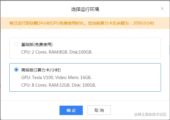 当启动项目时, 如个人信息完整, 则可以获得算力奖励