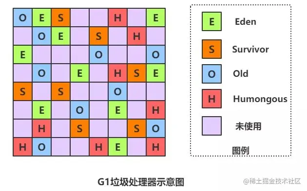 G1(Garbage First)物理内存不再分代,而是由一块一块的Region组成,但是逻辑分代仍然存在。G1不再坚持固定大小以及固定数量的分代区域划分,而是把连续的Java堆划分为多个大小相等的独立区域(Region),每一个Region都可以根据需要,扮演新生代的Eden空间、Survivor空间,或者老年代空间。收集器能够对扮演不同角色的Region采用不同的策略去处理,这样无论是新创建的对象还是已经存活了一段时间、熬过多次收集的旧对象都能获取很好的收集效果。