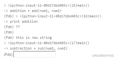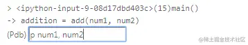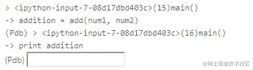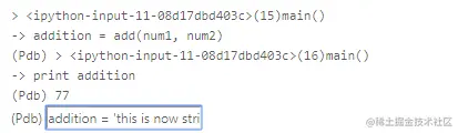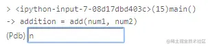 另外你可能已经注意到pdb实际上没有进入我们的add函数。让我们看看更多选项,使调试更有趣。