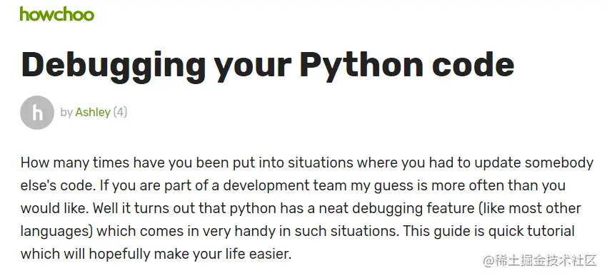 Python具有一个整洁的调试功能(像大多数其他语言一样),在这种情况下非常方便。本指南是快速教程,希望能让您的生活更轻松