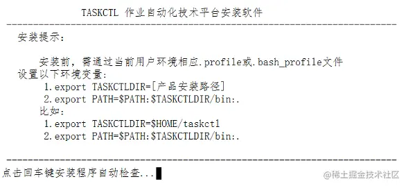 点击回车键后,安装程序会自动检查用户环境变量,如果TASKCTLDIR环境变量目录存在则继续,否则请按照第二步配置好环境变量再重新安装。检查通过后会出现以下界面: