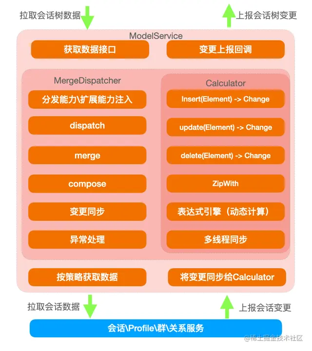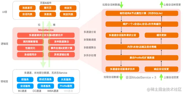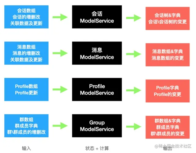 - 建立会话\消息 和Profile、群、群成员、关系数据、业务数据之间的 关联关系 ,生成聚合数据,并处理聚合数据之间的依赖、优先级和缓存一致性;