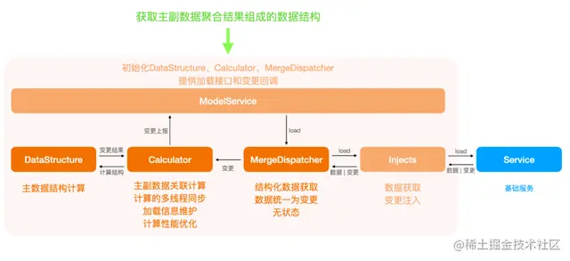 ModelService会使用初始化DataStructure、CalCulator、主数据、附属数据的Inject,并用来初始化MergeDispatcher