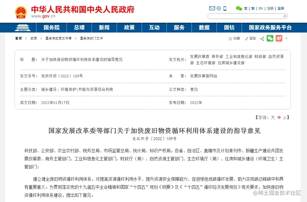 今年1月,由国家发改委牵头国家主要部门,《关于加快废旧物资循环利用体系建设的指导意见》和《促进绿色消费实施方案》近乎同期出炉,一定程度上是对去年《“十四五”循环经济发展规划》的承接。
