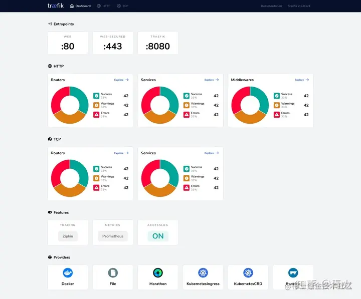 仪表板可以可视化地展示traefik的所有服务运行情况。