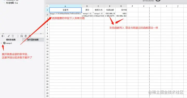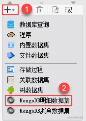 - 定义好数据连接后,数据集管理面板处新增MongoDB明细数据集和MongoDB聚合数据集。
