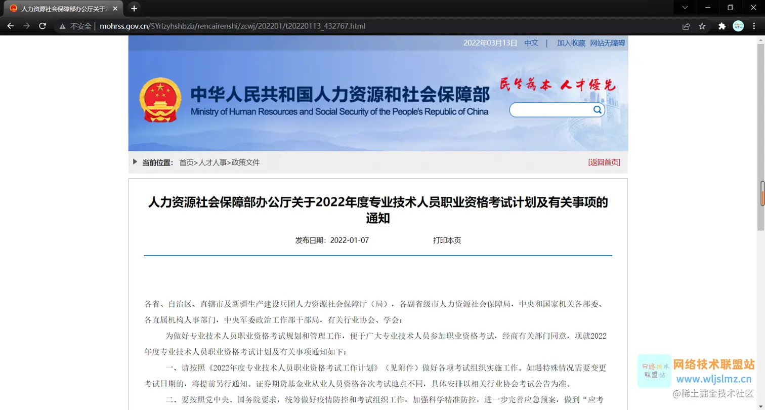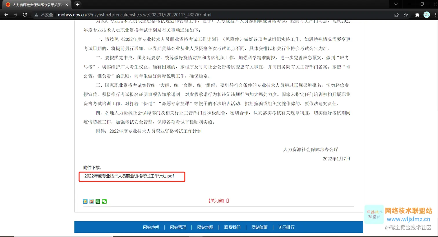 访问人社部的关于2022年度专业技术人员职业资格考试计划页面可以看到: