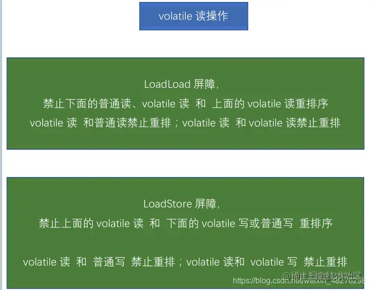 - volatile读之后的操作,都禁止重排序到volatile之前