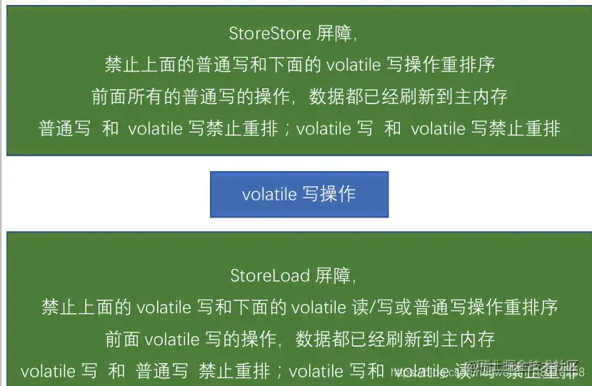- volatile写之后volatile读,禁止重排序的