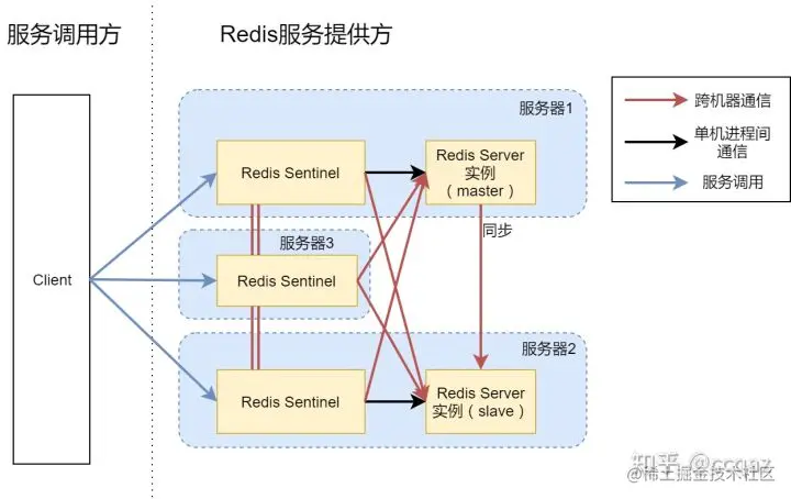 至此,我们就用3台机器搭建了一个高可用的Redis服务。其实网上还有更加节省机器的办法,就是把一个Sentinel进程放在Client机器上,而不是服务提供方的机器上。只不过在公司里面,一般服务的提供方和调用方并不来自同一个团队。两个团队共同操作同一个机器,很容易因为沟通问题导致一些误操作,所以出于这种人为因素的考虑,我们还是采用了方案4的架构。并且由于服务器3上面只跑了一个Sentinel进程,对服务器资源消耗并不多,还可以用服务器3来跑一些其他的服务。