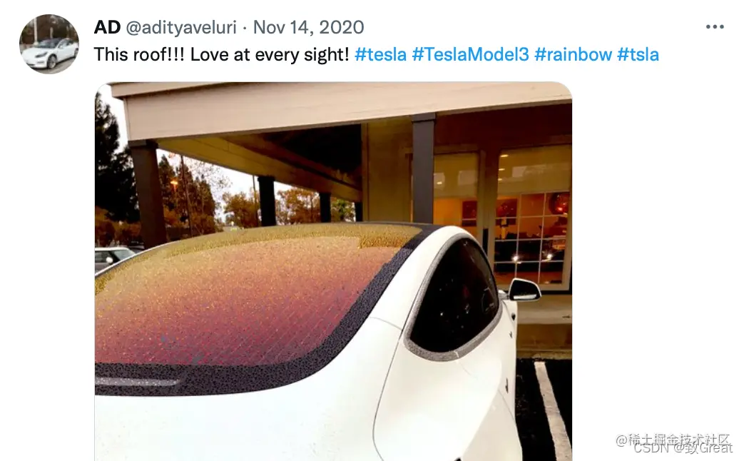 另一种常见的文本分类类型是情感分析,它旨在识别给定文本的极性。 例如,像特斯拉这样的公司可能会分析类似下图中的 Twitter 帖子,以确定人们是否喜欢它的新车天窗。