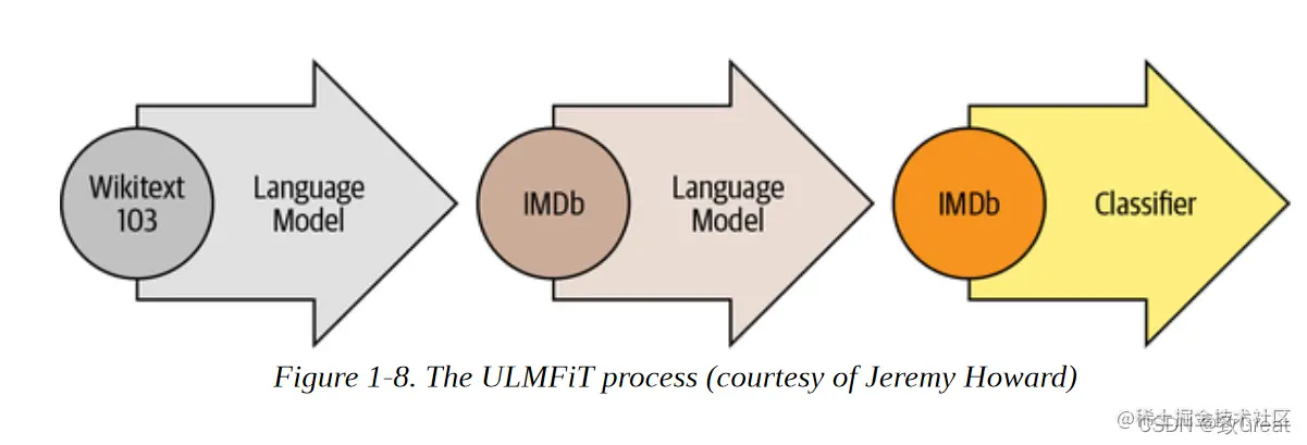 如图1-8所示,ULMFiT包括三个主要步骤: