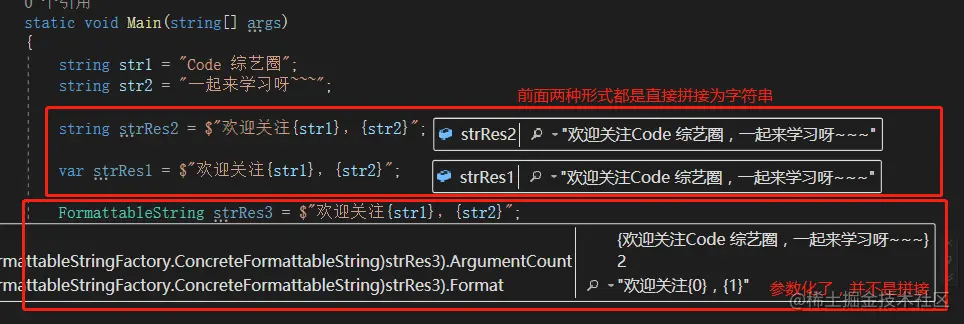 可以看到,FormattableString中包含拼接的字符串和对应的参数,拿到这些结果,就可以构造成想要的结果了。