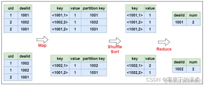 我们接下来举几个常用 SQL 语句转化为 MapReduce 的具体步骤: