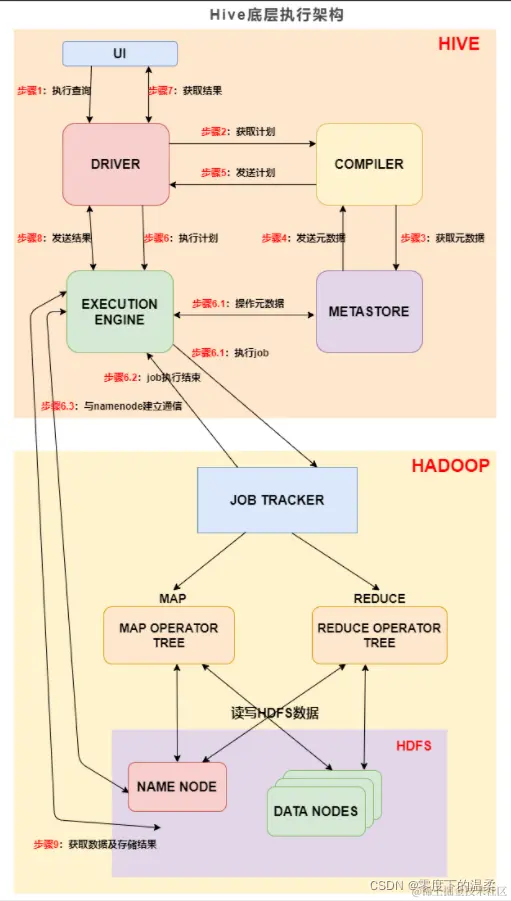 - EXECUTION ENGINE:执行引擎。负责提交 COMPILER 阶段编译好的执行计划到不同的平台上。