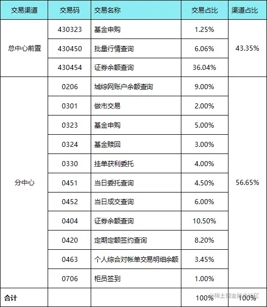 (3) 同时,证券系统交易高峰时段柜员签到、柜员签退交易占比较小。