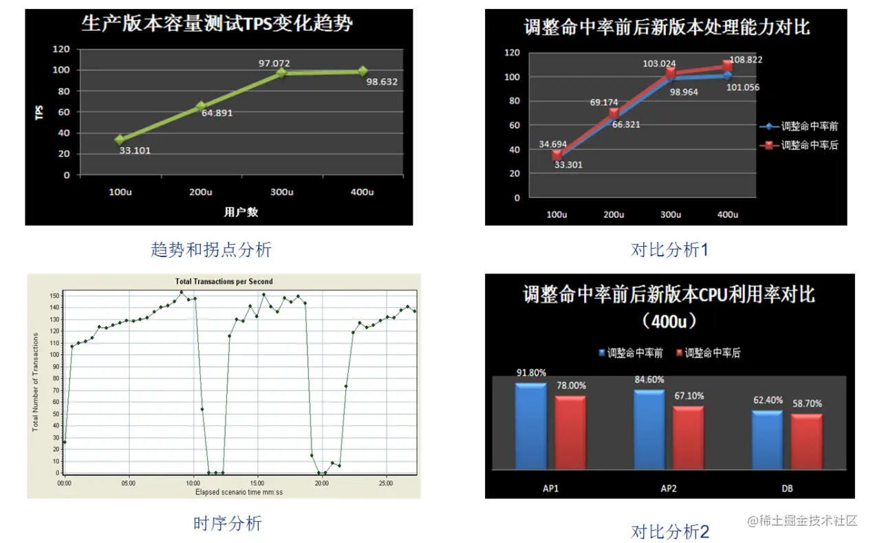 测试结果的描述,应体现性能测试的执行过程,如:混合场景的容量测试结果展示中,需要描述各个并发梯度下测试结果及监控结果;在数字形式的结果记录中,要求小数点后精确3位有效数字。