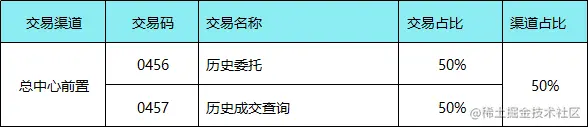 (1) 考虑到后期证券系统数据库升级,历史查询可能会影响,所以本次测试单独增加一个场景:历史委托和历史成交查询各50%(即0456和0457)。同时,考虑到线上环境绝大部分该交易是由总中心前置发起,所以本次测试“历史委托和历史成交查询”交易均采用从总中心发起;