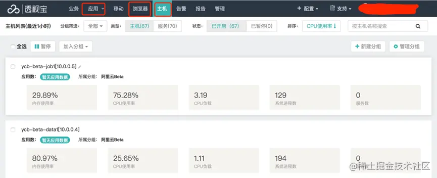 透视宝主机资源监控页面
