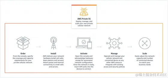 简而言之,AWS Private 5G 是一项全新的托管服务,通过 AWS 提供的所有必需的硬件和软件,客户可以轻松部署、管控和扩展自己的 5G 专用蜂窝网络。极大地降低任何对此解决方案感到兴趣的企业的准入门槛。