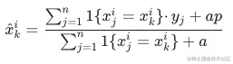对于数据k的特征i取值为: