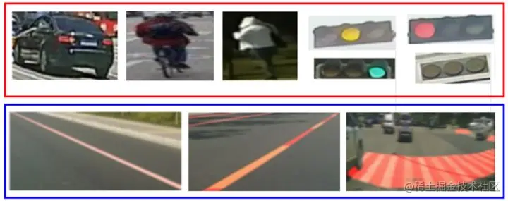 数据难: 同一个目标(标签)在不同的环境下呈现的形态差异大,如实车道线和虚车道线在城乡结合区域难以区分;数据存在小样本和样本不均衡的问题,车辆行人标签多,红绿灯数据相对较少。