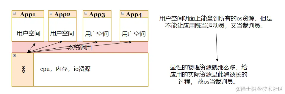 于是操作系统抽象出了内核对象,用于代表上述物理资源,内核态代码维护的内核对象,最终完成了资源调度。