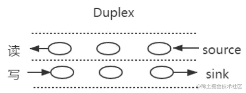 - 双工流: 既可读又可写的流。例如 net.Socket
