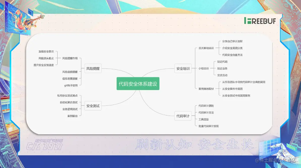 那今天主要就分享这四点内容,从这个培训到这样一个钩子的制作以及这个代码审计,那最后以及安全测试。那么这一次的话题就讲到这里了,那希望对大家有所帮助。再见。
