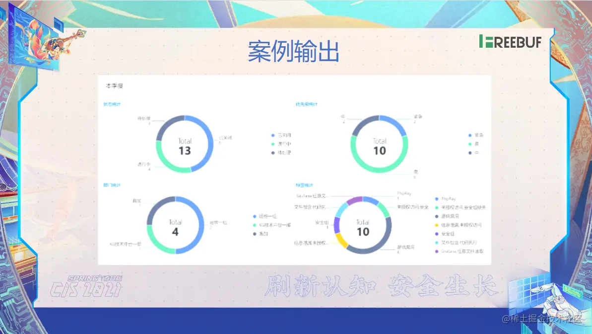 那这里有个图,就我们这个团队了,对公司的一些漏洞了一些整体情况。那有季度的一个报表,有这个部门的一个报表以及统计信息,就是它的漏洞类别的一些统计信息。