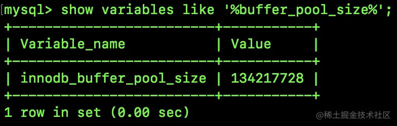 通过如下命令可以查看 buffer pool 的默认大小: