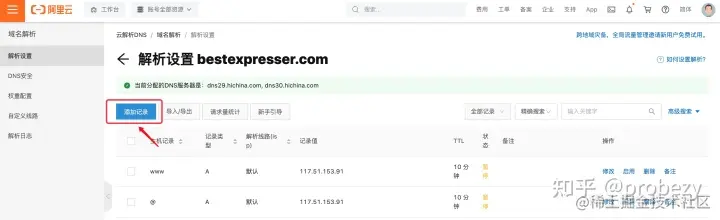 bestexpresser.com是在阿里云注册的,则我们需要登录阿里云,在阿里云控制台的云解析DNS里,bestexpresser.com域名下,添加一条CNAME记录。