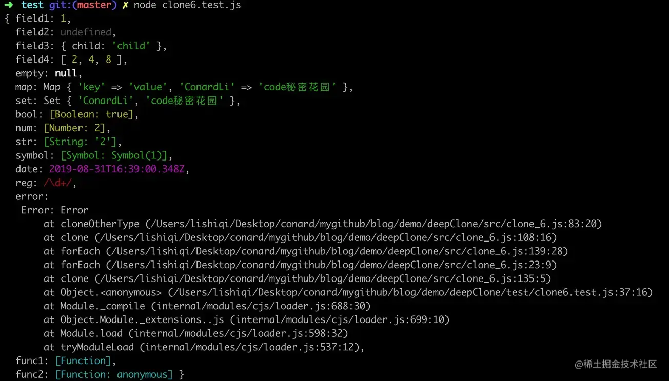 最后,我们再来执行clone6.test.js对下面的测试用例进行测试: