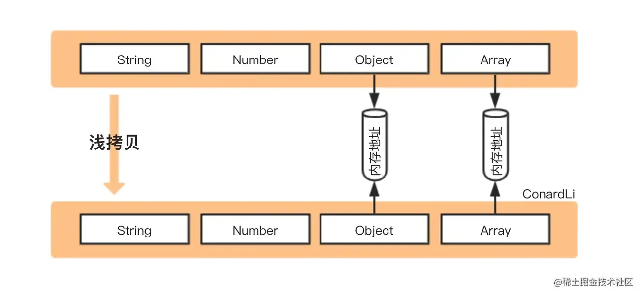 创建一个新对象,这个对象有着原始对象属性值的一份精确拷贝。如果属性是基本类型,拷贝的就是基本类型的值,如果属性是引用类型,拷贝的就是内存地址 ,所以如果其中一个对象改变了这个地址,就会影响到另一个对象。
