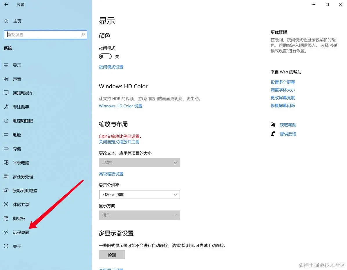 2.3 在打开的设置窗口中,点击左侧边栏的“远程桌面”菜单项。