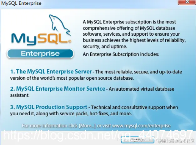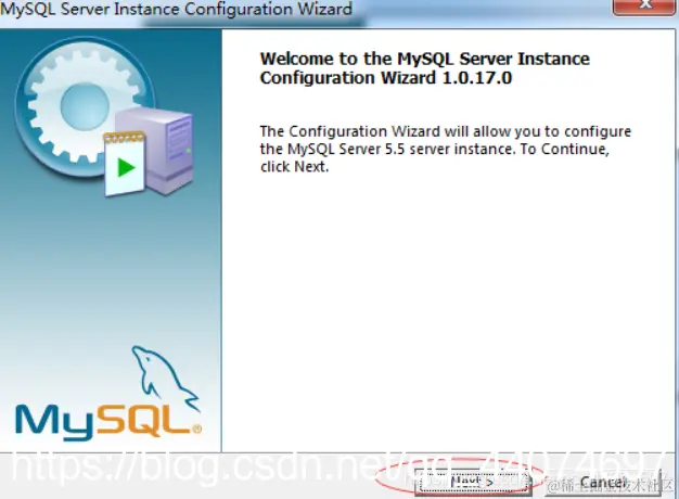 (8)安装完成之后会出现MySQL配置的引导界面,点击下一步