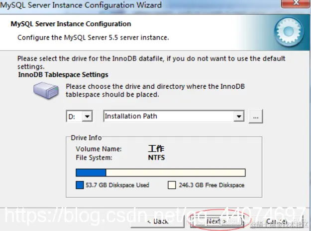 这里是配置MySQL的 InnoDB表空间,有些用户可能想要将InnoDB表空间文件放到不同的位置,而不放到MySQL服务器数据目录。如果你的系统有较大的空间或较高性能的储存设备(例如RAID储存系统),则最好将表空间文件单独放到一个位置。要想更改InnoDB表空间文件的默认位置,从驱动器下拉列表选择一个新的驱动器,并从路径下拉列表选择新的路径。要想创建路径,点击 ...按钮。如果你要更改已有服务器的配置,更改路径前你必须点击Modify按钮。此时启动服务器之前,你必须将已有表空间文件移到新位置。
