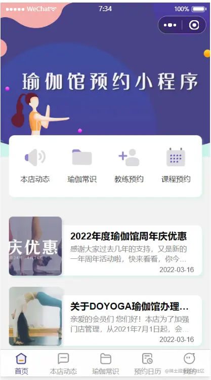 随着国民健身意识越来越强,各式各样的健身模式不断出现。瑜伽也受到了大众的喜爱,瑜伽行业发展越来越快,作为馆主,你还在微信群里让你的会员使用接龙的方式进行约课吗?你还在用传统的Excel进行排课吗?如果有一款小程序会员点一下就能约课,会不会让你惊喜、意外、激动——没错,瑜伽预约小程序就是为了解决馆主会员约课的痛点应运而生。功能包括瑜伽馆动态,瑜伽常识,瑜伽老师预约,瑜伽课程预约等模块。