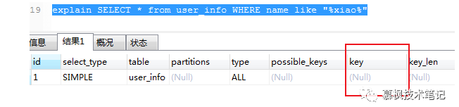 4、like 使用了 %X 模糊匹配