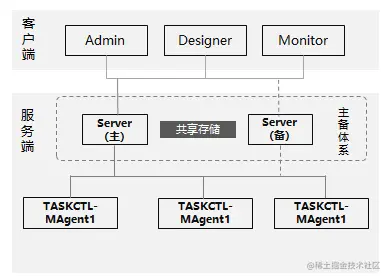 TASKCTL本身无数据库,无任何第三方中间件,整个产品信息均在一个文件目录下。因此,通过共享存储,连接两个不同应用环境,即可达到信息共享的目的。TASKCTL在信息共享的基础上,通过一定可靠的检测技术,保证两个主备环境的实例启停的自动切换,从而达到服务高可靠的目的。